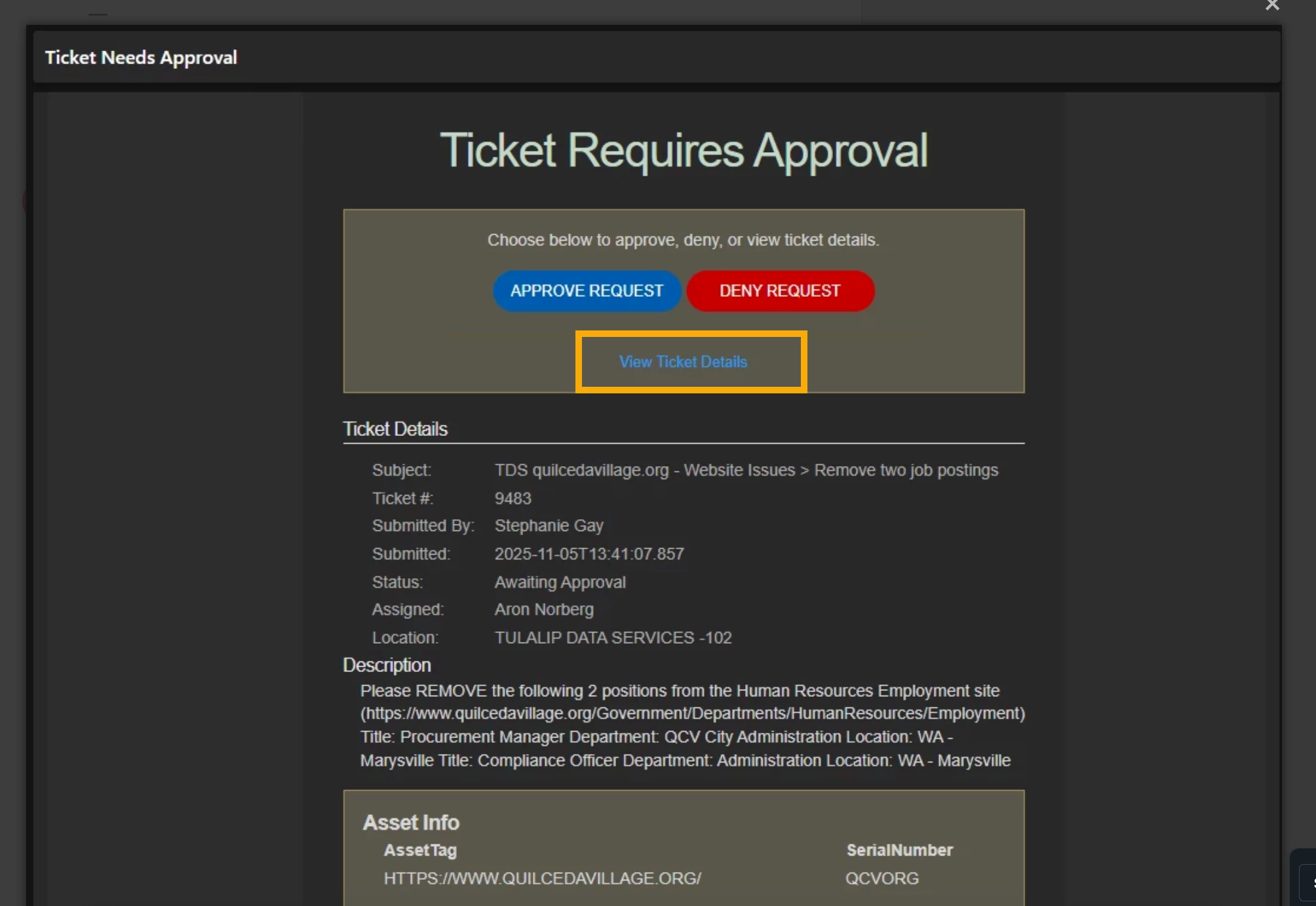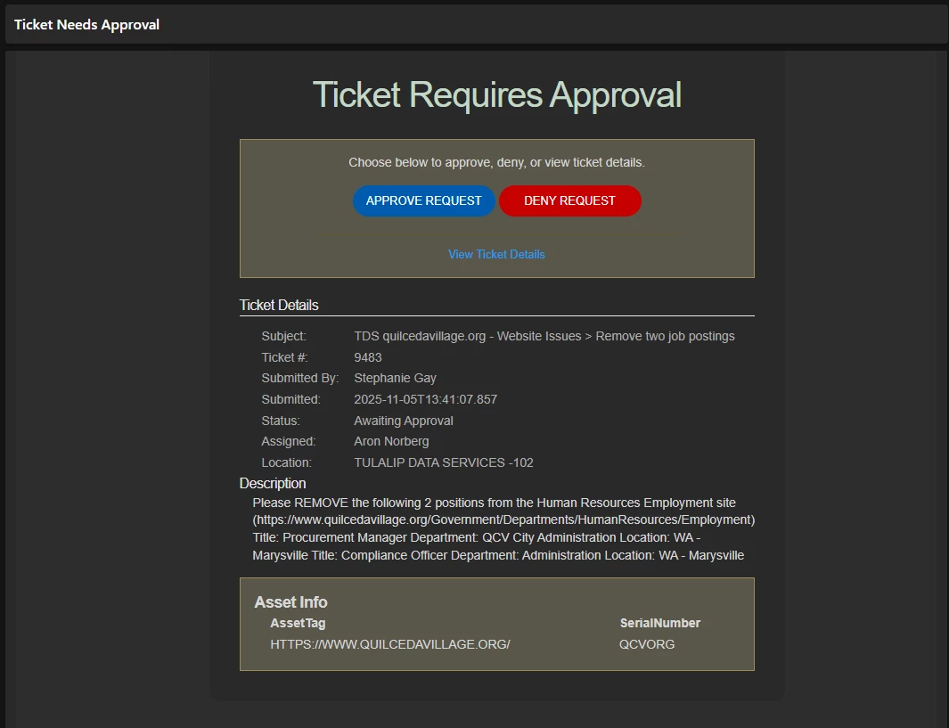 I am hoping to get some help with a ticket approval process. Currently i am using the enhanced approval workflow to generate an email to the end user to see the changes they requested on a website. But the user has to copy and paste in the site and is causing some issues. Does anyone know of a different solution?