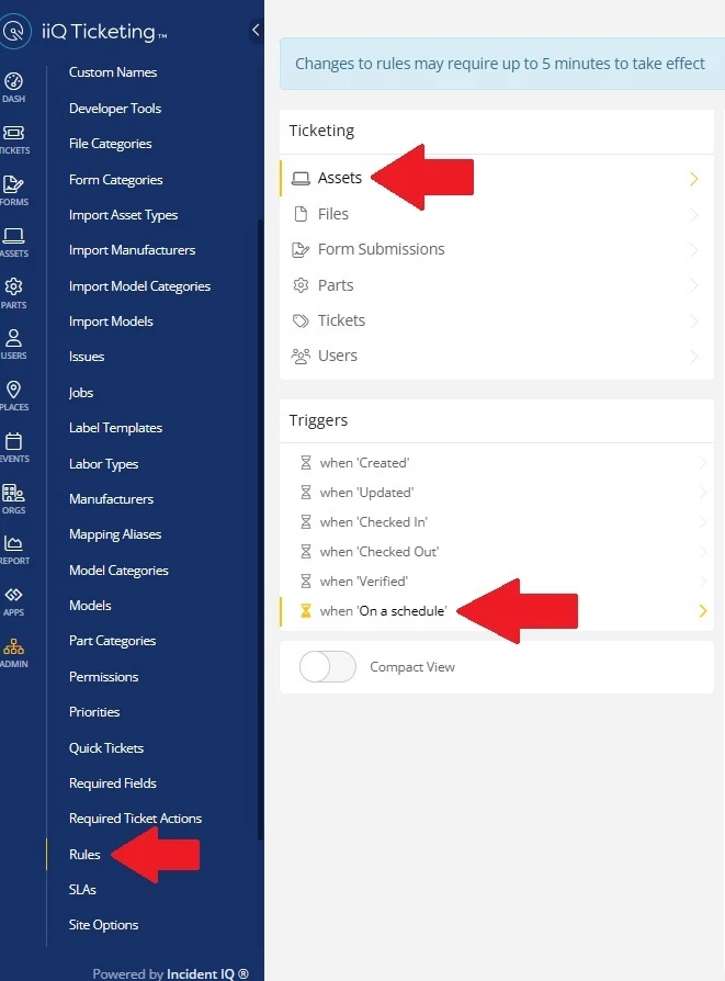 Once that is enabled you would go to Rules>Assets>On a Schedule