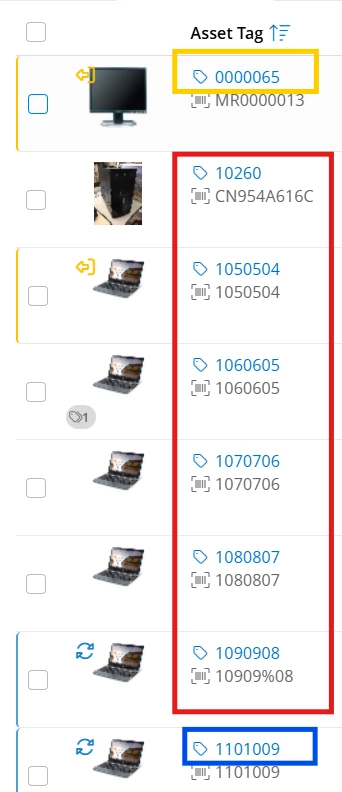 I hope you’re doing great! After further investigation, I found that when the assets are sorted by asset tag, the system sorts it by sorting each digit in the asset tag, not by the whole asset tag. For example, I selected the assets to sort by Asset Tag (Ascending). Currently, the asset tags are sorted by sorting each digit, so the assets that have “0” as the first digit in the asset tag are placed above in ascending order for example 0000065, assets that have “1” as the first digit are placed later and in ascending order for example, 10260, 1050504, 1060605, 1070706 and, so on. I’ll attach a screenshot for your reference.
