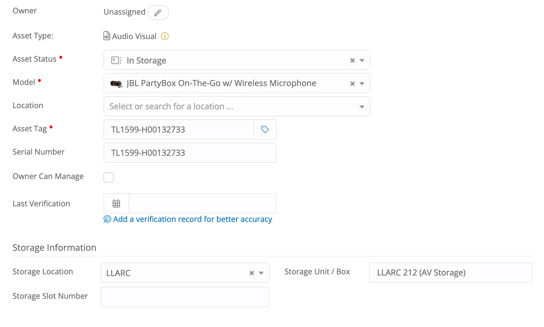 Is it possible to have a location’s room numbers as possible storage locations? We don’t have a warehouse or designated storage locations except for some closets, shelves, and cabinets. I’d like to be able to select a specific room for the storage location rather than typing in a blank field.