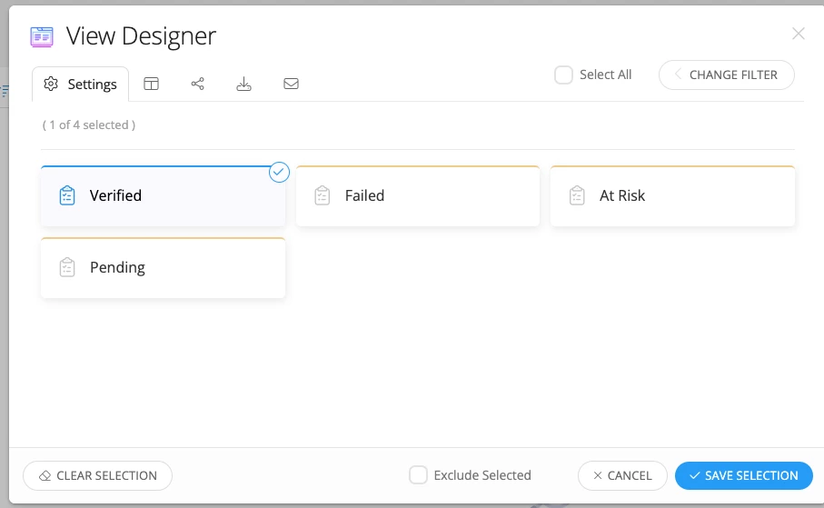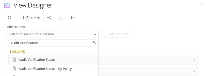 There are a couple of different options to pull this information into a custom View! You can add the columns of “Audit Verification Status”, which will show you the verification status of assets that are covered by an audit policy, or you could add the column “Audit Verification Status - By Policy” which will additionally include the policy information: