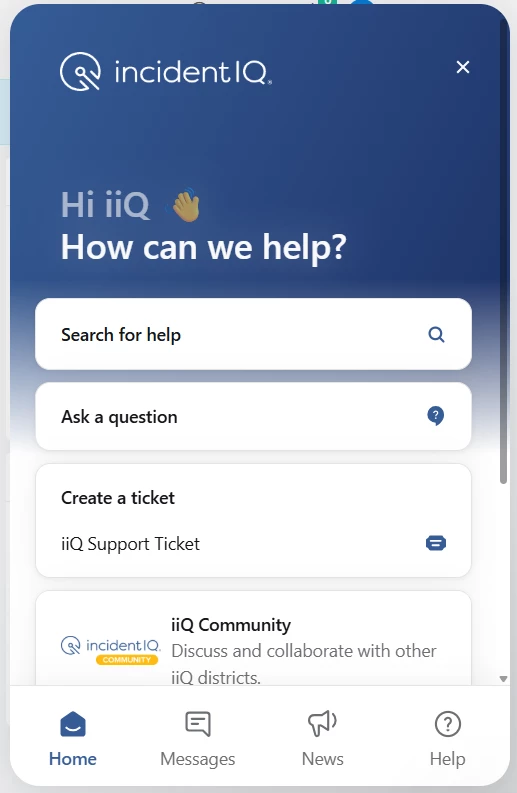 - Open the iiQ Support Bot - Click the iiQ Support Bot located in the bottom-right corner of your screen.