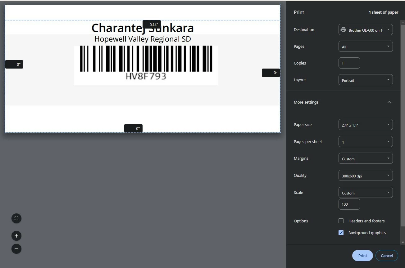 Is there any support for printing them on label paper in a regular printer? For Example we use Avery 5160 Paper for name tags and replacement barcodes. Would we be able to print them from IIQ with this paper?