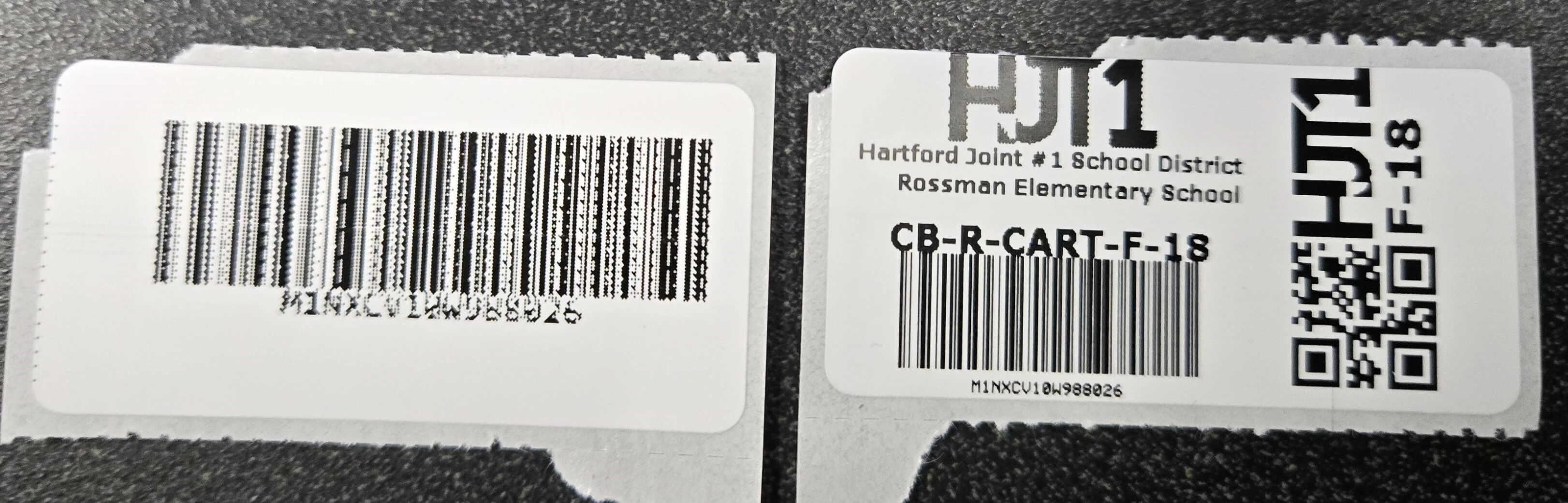 Side note, the goofy looking label is so we can fold it around the edge of a Chromebook and scan them without having to open them all or “de-case” them.