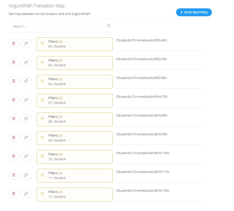 In our case we place a filter on it that if, for example, they are in fourth grade, we put two filters on it that they are in grade 04 and their role is a student. The Chromebook is then placed in the /Students/Chromebooks/BES/4th grade OU.