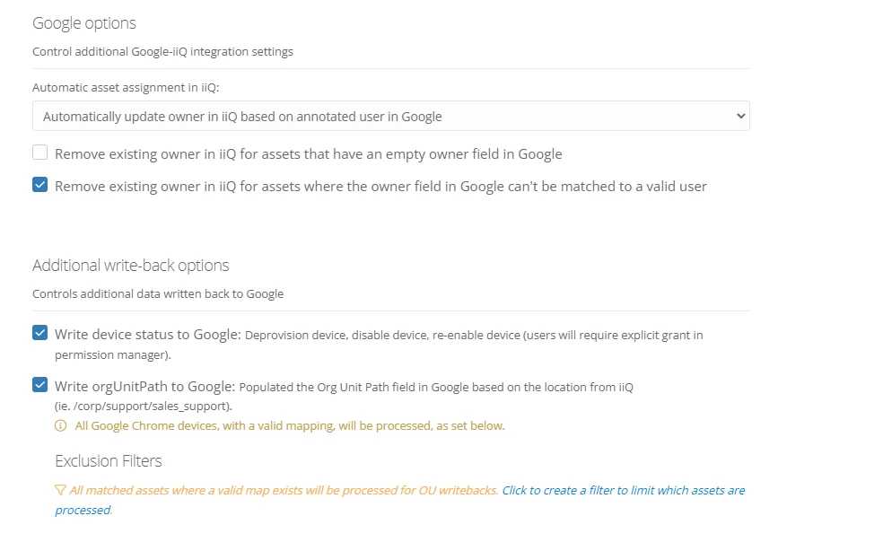 Under Google Options, we update the owner in iiQ based on the annotated user in Google and remove the existing owner in iiQ when there is no valid user.