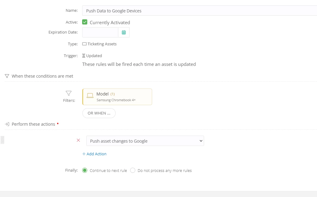The second part is in the rules, When a Chromebook is updated, we push asset changes to Google.