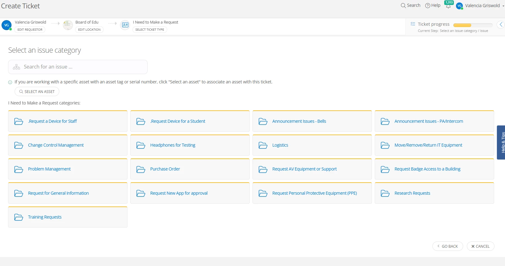 To see which ticket option/bucket you want the Issue Category to show up under, you will navigate to: