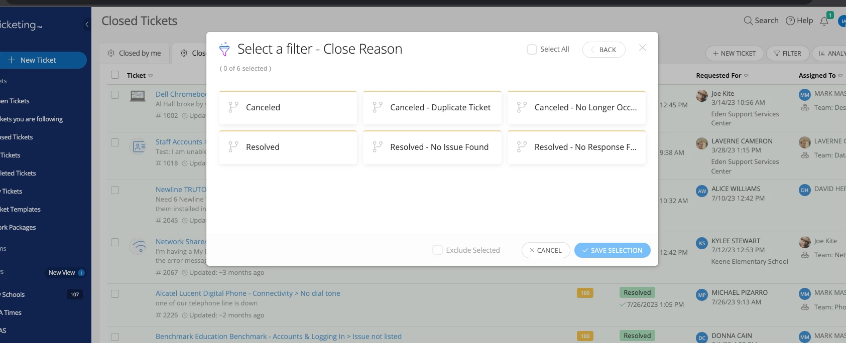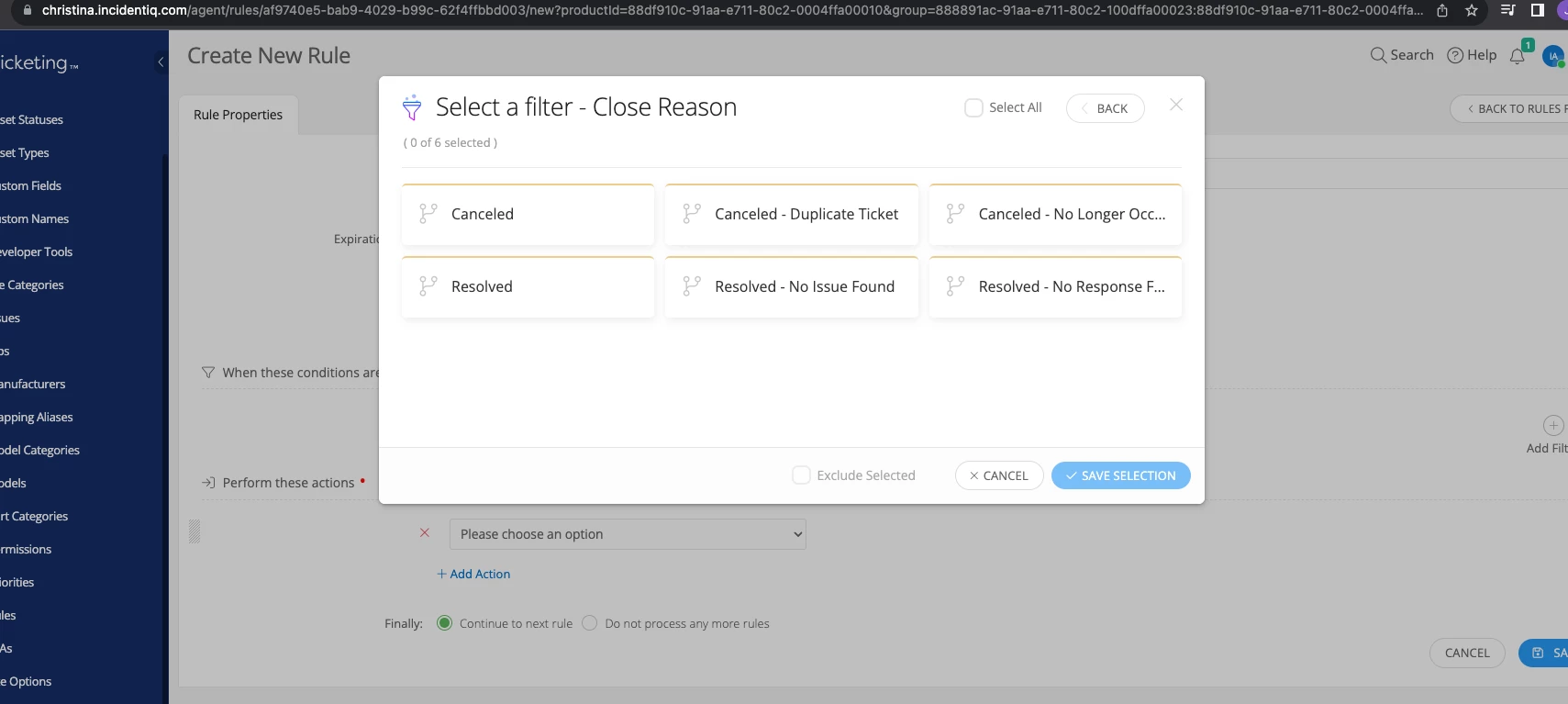 While on the one hand I could understand “No Issue Found” not necessarily having a resolution action tied to it (even though there ARE default Resolution Actions that are related, i.e. “Unable to replicate issue”), it makes a bit less sense for “No Response from Requestor” to be able to be just closed without any resolution actions being required. The related problem is that because you can close tickets without putting in an action, those tickets do not show up as having a resolution action when you run analytics on it.