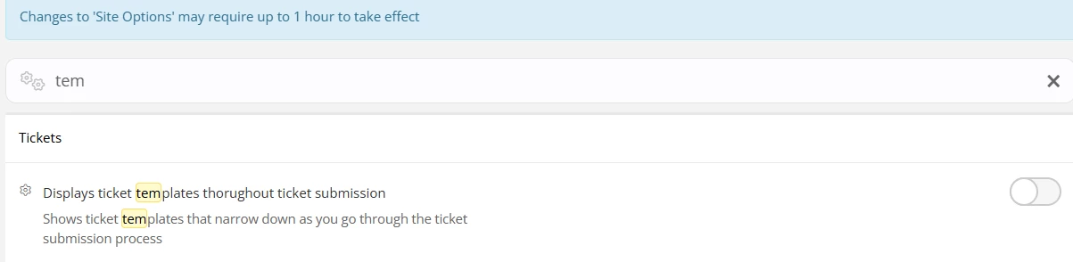 We are missing "Displays ticket templates throughout ticket submission" in out site options, anyone else?