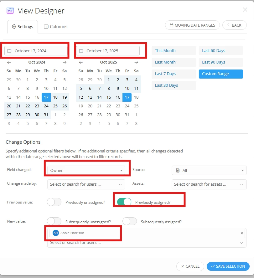 Now it shows all the assets that were assigned to the user in a given timeframe.
